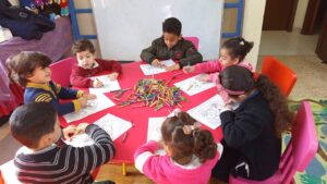 Fadia, seeing the need for something more, suggested, “Why don’t we teach them English?” With many people uprooted by conflict hoping to resettle in English-speaking countries, the idea was quickly approved, and a text message went out announcing the class.