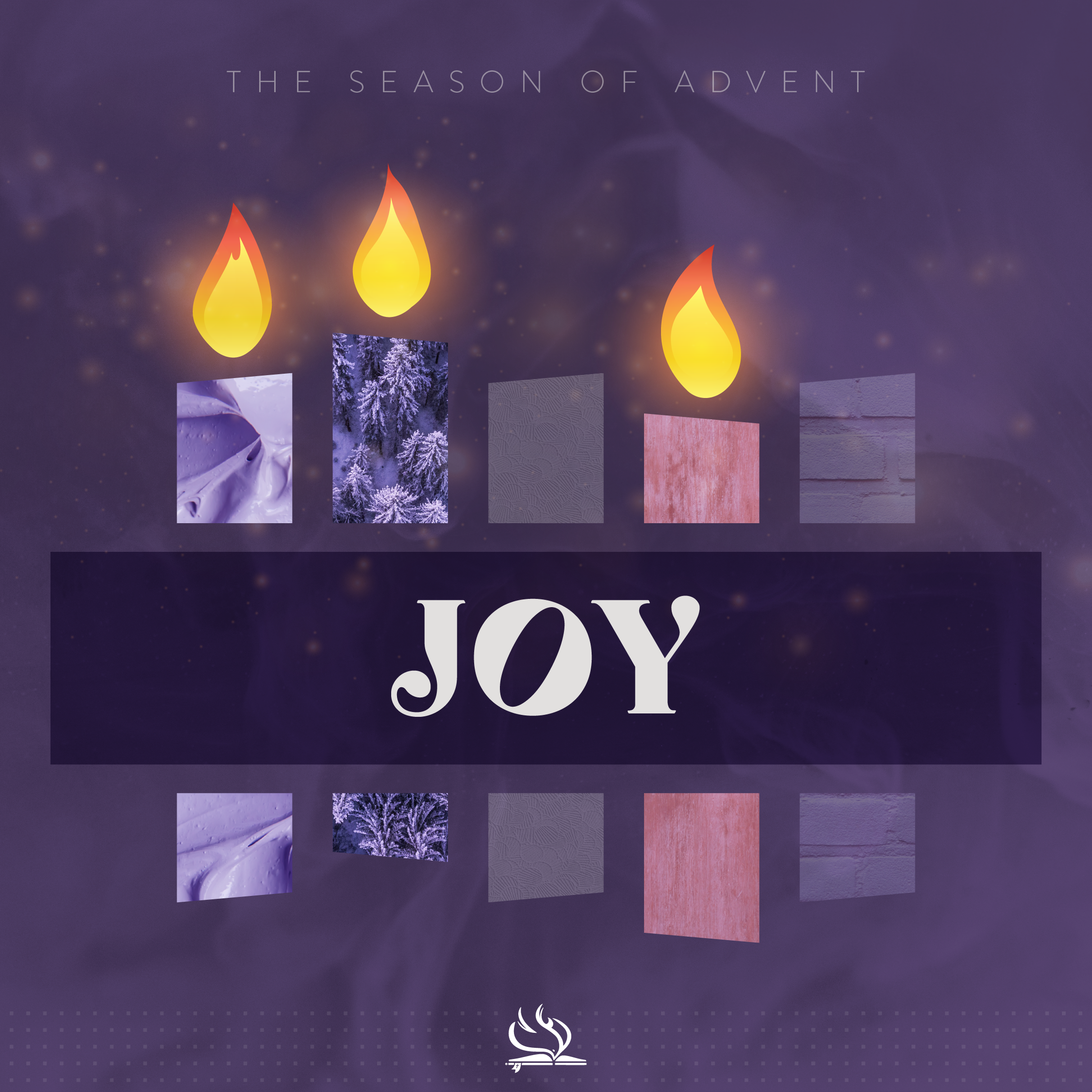 The season of Advent lasts four Sundays leading up to Christmas. It is a time of preparing for and anticipating the coming of Jesus Christ. Use these original graphics on social media as we share in this season together.